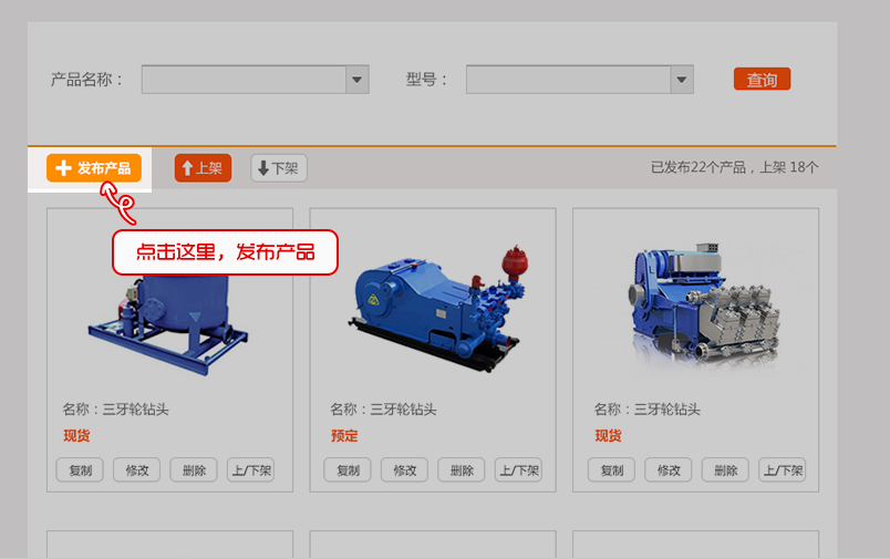 通过认证的供应商会员,登录后在会员中心->产品管理->产品发布模块发布产品