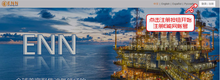 在浏览器的地址栏中输入:www.e-neng.net在打开的页面中,选择“油气”模块。进入页面后,点击“注册”按钮开始注册ENN的账号。